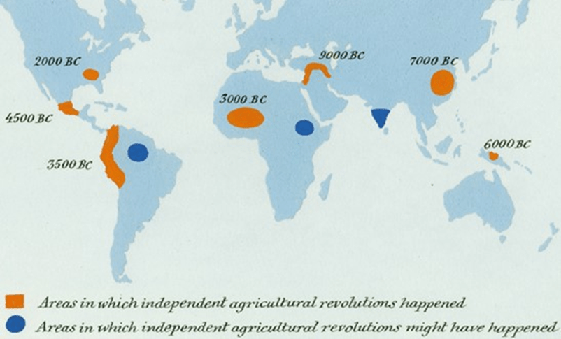 يېزا ئىگىلىك ئىنقىلاۋىنىڭ باشلانغان جايى ۋە تارىخى، بۇ سانلىق مەلۇماتلار يەنىلا تالاش-تارتىش ئۈستىدە، يەنە كېلىپ ئەڭ يېڭى ئارخىئولوگىيەلىك بايقاشلارغا ئەگىشىپ بۇ خەرىتىمۇ يېڭىلىنىپ بارماقتا.